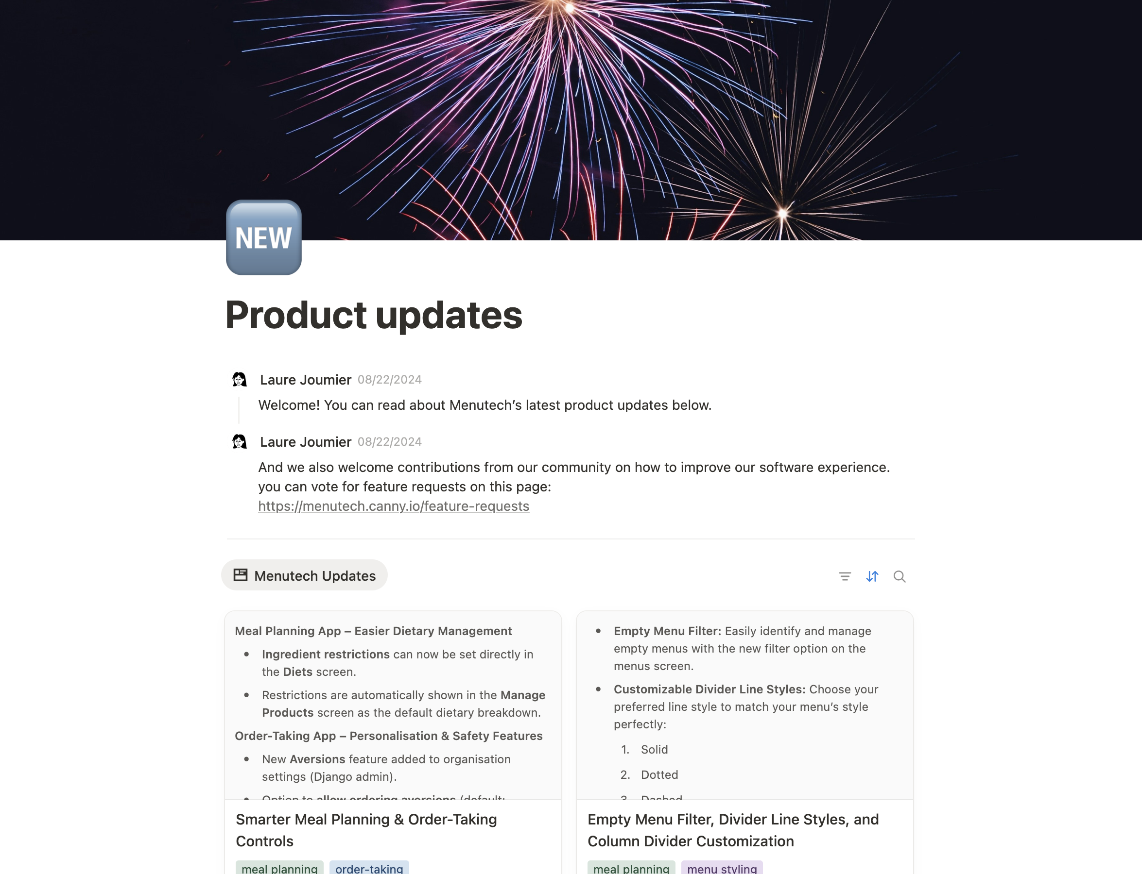 Puoi leggere gli ultimi aggiornamenti dei prodotti di Menutech su questa pagina.