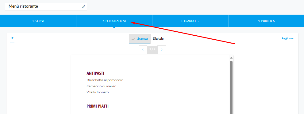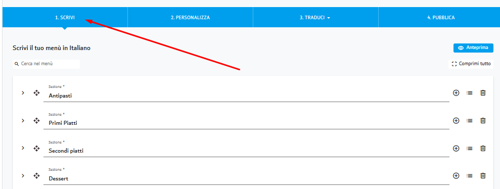 - Vai alla schermata di scrittura: accedi al tuo account Menutech e vai alla schermata di scrittura dove gestisci le voci del tuo menu.