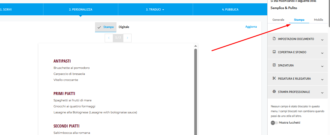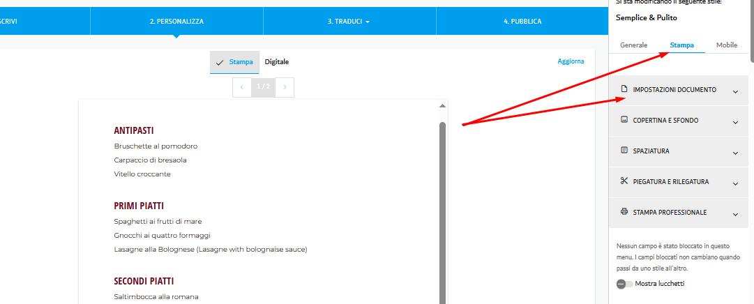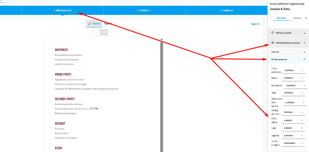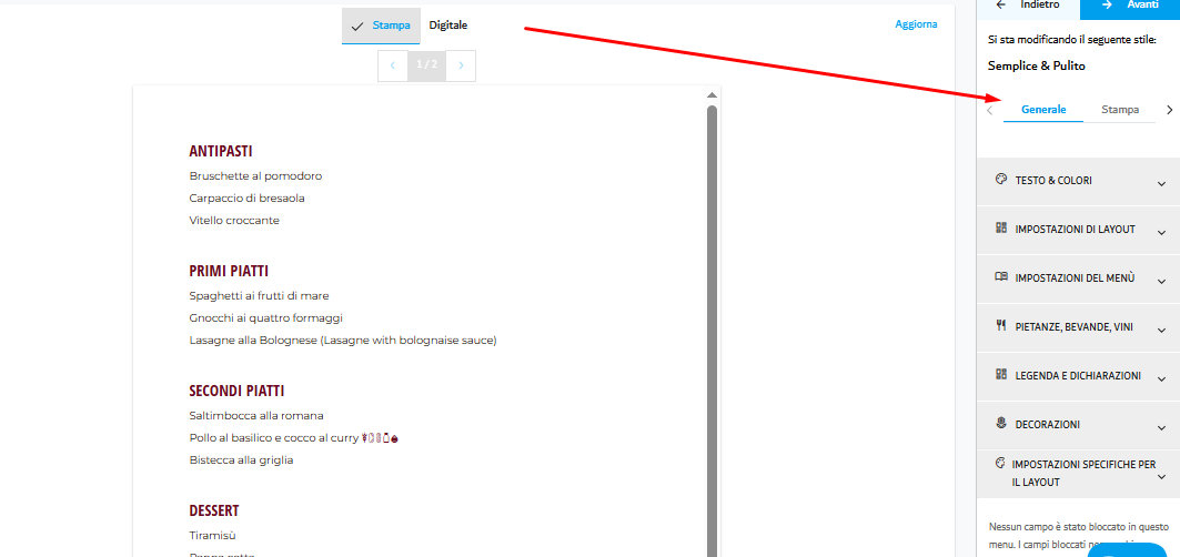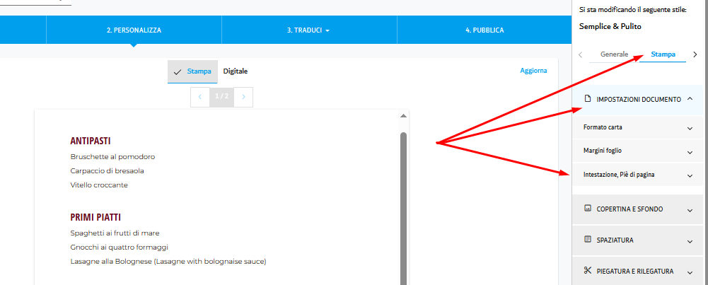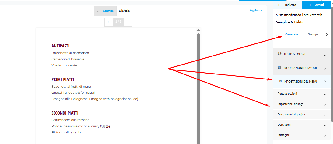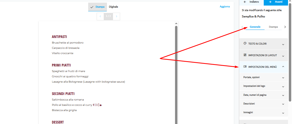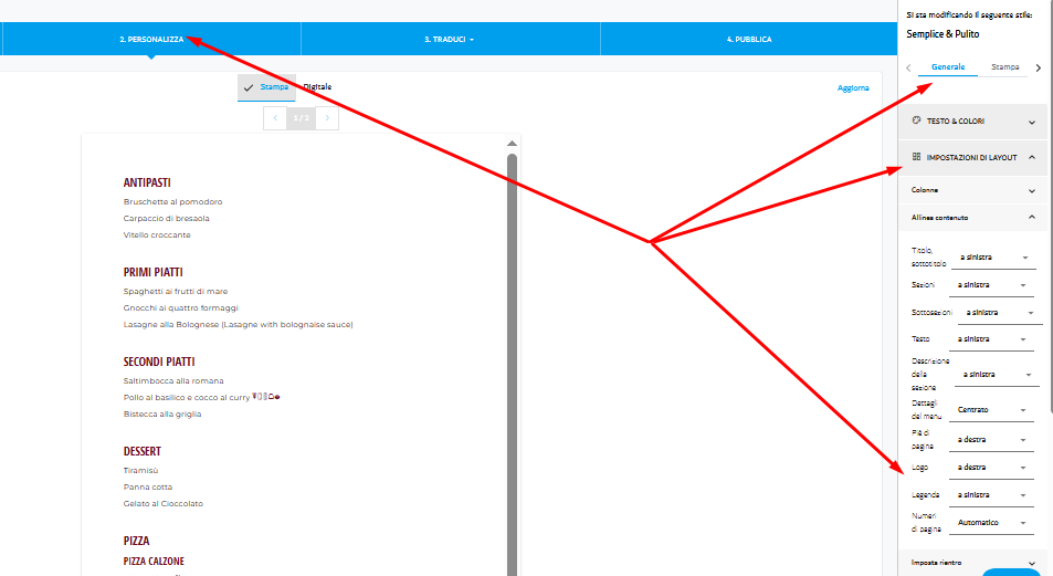 Menutech offre strumenti potenti per aiutarti a personalizzare l'aspetto del tuo menu, permettendoti di dare vita anche alle idee più creative. Questa guida ti accompagnerà nell'adattamento delle impostazioni di intestazione, piè di pagina e logo del tuo menu, garantendo un layout professionale e visivamente accattivante.